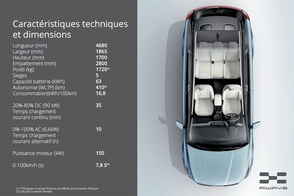 Aiways apparaît comme une marque exotique dans la tentaculaire liste d’entités chinoises. Le constructeur est rattaché au groupe Jiangling Motors Corporation à travers un complexe organigramme de joint-venture et de partenariats. Lancée en 2017, la marque s’est d’abord fait remarquer avec la Nathalie, une vision de sportive « hybride » (méthanol et électricité) imaginée avec Roland Gumpert, s’il vous plaît.