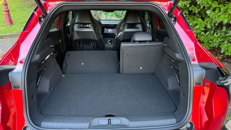 Technique – Alfa Romeo Junior Veloce : comment fait-il pour atteindre 280 ch ?Avec un coffre de 400 litres, le Junior Veloce offre une capacité de chargement dans la moyenne du segment. Ce volume peut être étendu à 1 265 litres une fois les sièges arrière rabattus. Le seuil de chargement affleurant et les doubles-fonds apportent une vraie praticité au quotidien. Un petit rangement sous le capot, réservé aux câbles, est également une bonne idée pour libérer de l’espace dans le coffre principal.
