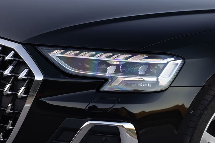 Pour cette seconde mouture, l’Audi A8 60 TFSI e s’offre un léger coup de fard, juste pour marquer la rupture avec la demi-génération précédente. Comme de coutume, les évolutions sont très fines et l’on remarque davantage le regard plus affûté et la signature lumineuse arrière est désormais personnalisable à l’achat. L’A8 pense aussi à se ripoliner la façade avec une calandre partiellement chromée et des ouïes latérales tout aussi clinquantes.