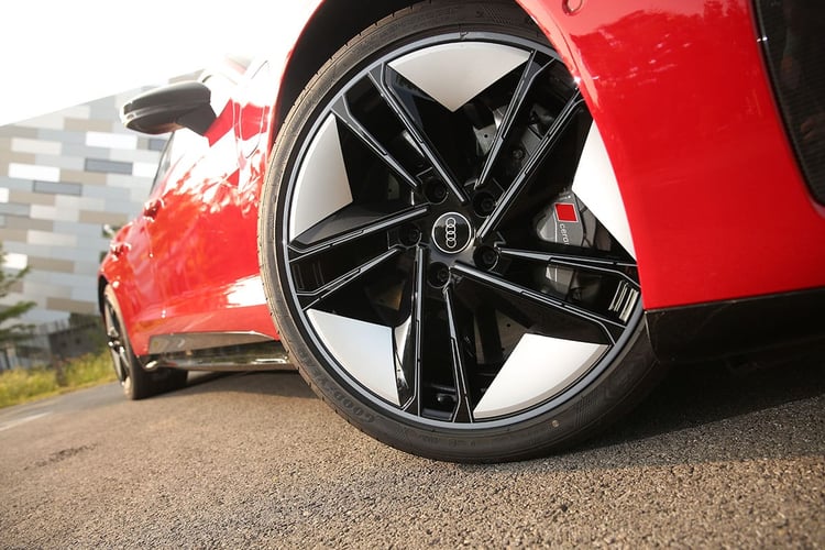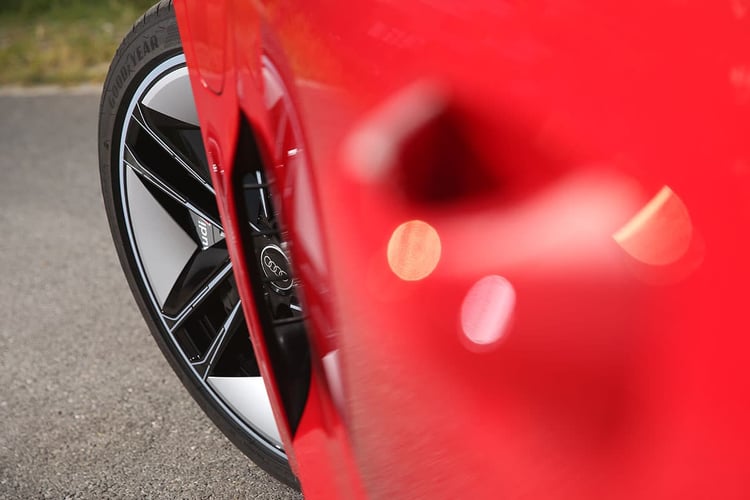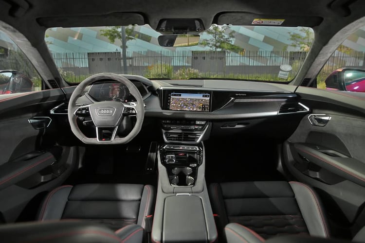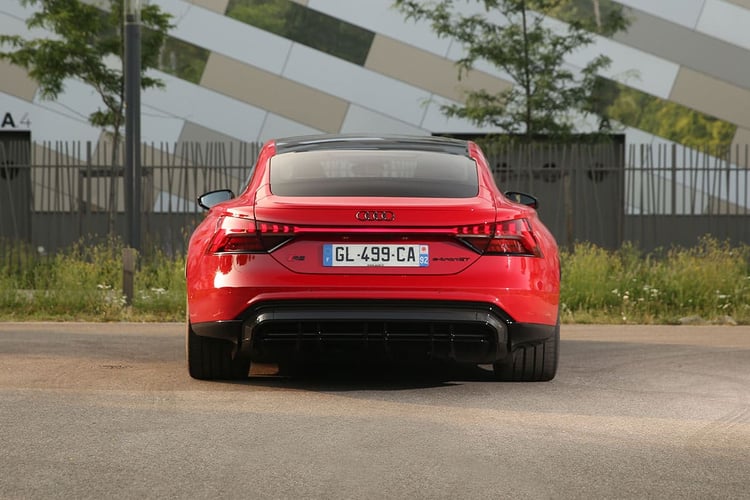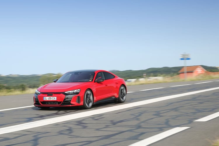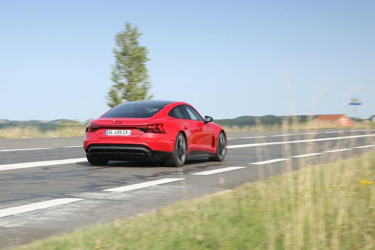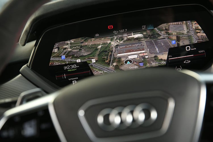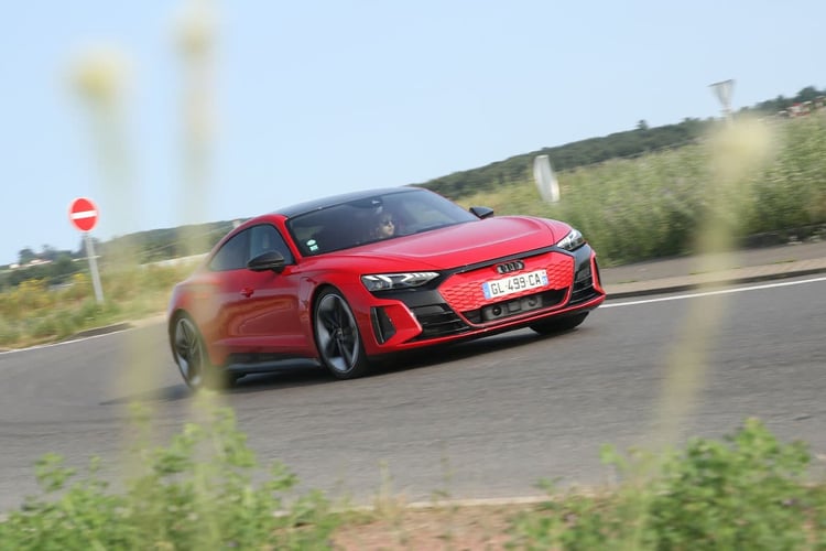 Sur la route en revanche, on s’imagine à bord des meilleures berlines. La suspension encaisse avec brio toutes les irrégularités de la route malgré des jantes surdimensionnées. L’aérodynamique maîtrise les bruits d’air, mais les pneus larges rehaussent le niveau sonore à bord. Et si l’on aurait parié moins, nous avons enregistré à bord des niveaux équivalents à ceux d’un SUV à 130 km/h ! Enfin, notons ici qu’Audi cultive la sensation jusqu’au bout : avec une sonorité artificielle bien travaillée et des remontées de la transmission dans le bas du dos, on pourrait se croire à bord d’une sportive thermique aphone, à l’image d’une Nissan GT-R.