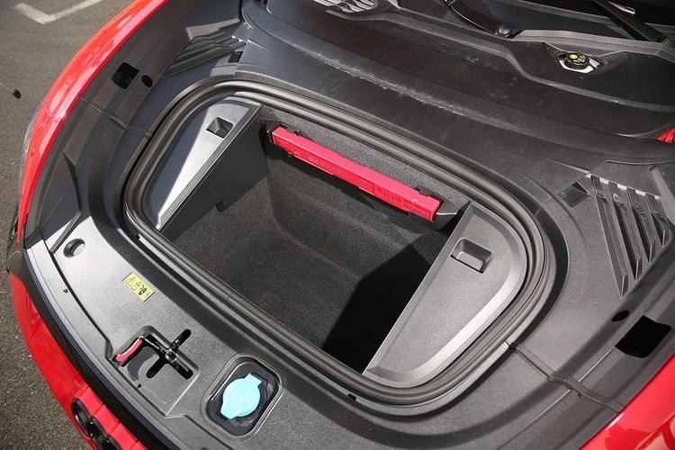 La position de conduite appartient sans surprise au monde des sportives, avec une assise basse, une planche de bord surélevée et enveloppante, ainsi qu’un manque d’espace pour les jambes une fois au volant. Les passagers arrière sont confinés mais ils disposent d’une assise confortable grâce à l’agencement des modules de la batterie qui permet de libérer la cave à pied. Pensée comme une GT, cette e-Tron GT n’est donc pas celle avec laquelle nous nous attarderons sur les aspects pratiques. Surtout que son coffre arrière de 350 l, secondé par un rangement de 85 l sous le capot, n’est pas à la hauteur de son gabarit.