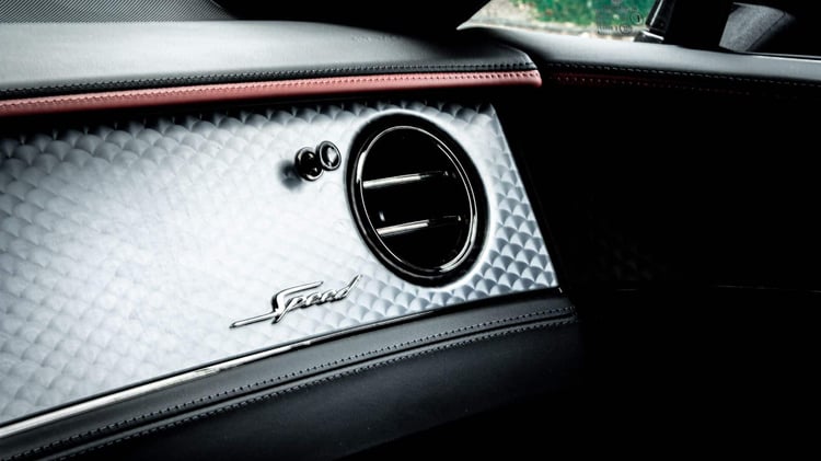 Notre modèle Speed est doté d’un intérieur en aluminium teinté du plus bel effet. Pour les allergiques à toute forme de modernité, cette Continental reprend évidemment l’indispensable panneau central à trois faces. Au démarrage, le panneau bascule sur la face “digitale” dévoilant une dalle tactile de 12,3 pouces. Mais vous pouvez également opter pour une face en aluminium dotée d’un chronomètre, d’un thermomètre et d’une boussole. Vous avez le droit de trouver ça too much, mais ne vous y trompez pas, les commandes de cette Bentley sont infiniment plus pertinentes et logiques que sur n’importe quelle voiture “high-tech” avec la climatisation, la ventilation, les modes de conduite, le système multimédia ou encore les assistances à la conduite accessibles d’une simple pression sur un bouton physique. Il suffisait d’y penser. On en vient même presque à regretter que Bentley n’ait pas poussé le bouchon encore plus loin en conservant une instrumentation avec de vrais compteurs. Mais la dalle numérique est certainement devenue indispensable sur une voiture de ce prix en 2025.