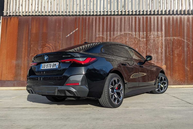 Essai BMW i4 : la berline électrique de Munich peut-elle effrayer Tesla ?Mais ce ne sont pas tant les valeurs d’accélération qui font tout le sel de cette version d’entrée de gamme. Car dénuée de moteur à l’avant, la i4 eDrive40 annonce tout de même 165 kg de moins que la M50 à deux moteurs. Au volant, le gain semblerait même plus élevé, tant la berline électrique arrive à faire oublier ses 2 050 kg (à vide). Et ce n’est pourtant pas gagné, puisque cette version se passe du châssis renforcé de la M50.
