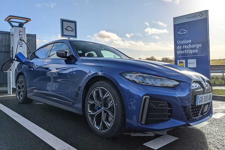 Devant la borne, les deux font jeu égal avec une confortable puissance de recharge DC de 205 kW. Sur une borne Ionity (BMW propose un tarif préférentiel de 0,30 €/min avec un abonnement à 13 €/mois), la i4 peut tirer le maximum de sa puissance et annoncer une recharge de 10 à 80 % en 31 minutes. Par excès de prudence, nous n’avons pas effectué de test de recharge rapide complet. En revanche, nous avons observé une certaine cohérence avec la courbe de recharge communiquée par le constructeur, avec 117 kW de puissance à 50 % de charge et 43 kW à 80 %. Il faudrait donc pouvoir brancher la voiture sous la barre des 20 % de charge pour profiter du pic de puissance.