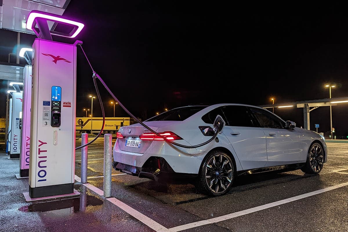 Au final, nous avons enregistré un ravitaillement de 33 minutes. Ajoutée au temps de trajet habituel avec un arrêt, cette immobilisation porte le temps de trajet total pour 500 km à 4 h 57. Soit, si l’on s’amuse à comparer les petits chiffres, quatre minutes de plus que la Mercedes EQE 350+. En tout cas, la BMW i5 eDrive40 passe de justesse au-dessus de la barre symbolique des 100 km/h de moyenne, le minimum pour une voiture de son rang. La Hyundai Ioniq 6 RWD détient toujours le record avec un chrono de 4 h 41.