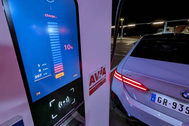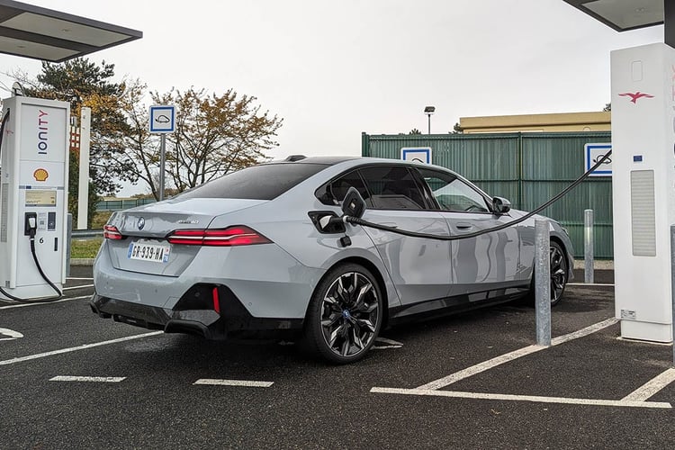 Au final, nous avons enregistré un ravitaillement de 33 minutes. Ajoutée au temps de trajet habituel avec un arrêt, cette immobilisation porte le temps de trajet total pour 500 km à 4 h 57. Soit, si l’on s’amuse à comparer les petits chiffres, quatre minutes de plus que la Mercedes EQE 350+. En tout cas, la BMW i5 eDrive40 passe de justesse au-dessus de la barre symbolique des 100 km/h de moyenne, le minimum pour une voiture de son rang. La Hyundai Ioniq 6 RWD détient toujours le record avec un chrono de 4 h 41.