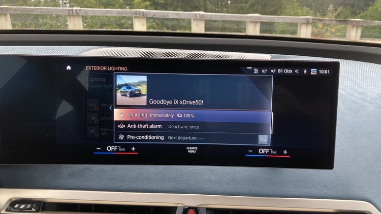 « On a vraiment l’impression d’être dans un concept-car », a estimé Maxime Fontanier lors de son essai du BMW iX. Cette réflexion lui est venue alors qu’il constatait la diversité des matériaux utilisés dans le véhicule, le design futuriste, ainsi que le large écran multimédia de 14,9 pouces qui permet d’effectuer tous les réglages.