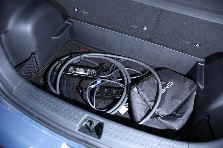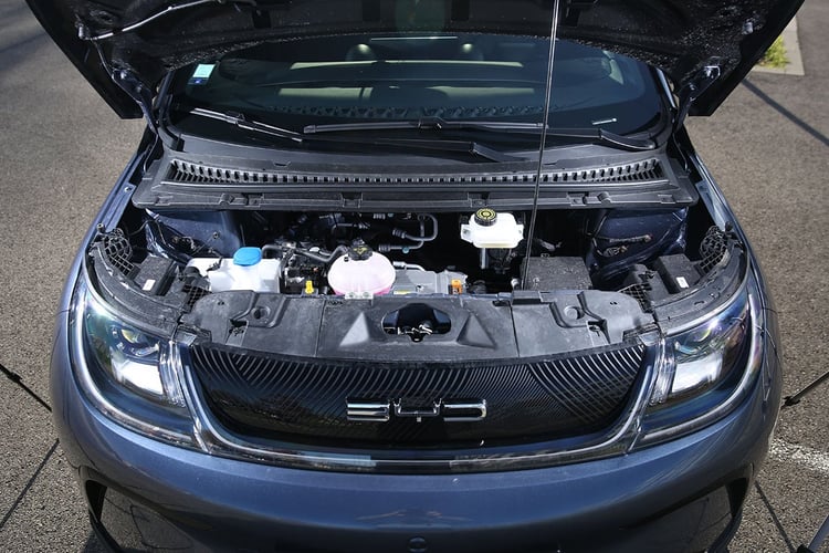 Côté rangements, la Dolphin en offre beaucoup à bord, dont le bac sous la console centrale. Dommage, le plastique utilisé sonne creux et devient agaçant dans les virages si l’on y range des clés. La plateforme électrique n’autorise pas la présence de rangement à l’avant. En revanche, il existe des bacs aftermarket à installer soi-même qui, en plus d’habiller l’espace, offrent deux rangements. Autrement, seul le coffre de 345 l permettra de ranger les affaires. Il cache un énorme rangement sous le plancher et les creux permettent d’y loger des objets aussi longs que notre trottinette (même si elle y est rentrée au chausse-pied). Reste que l’habillage en plastique dur est là aussi terriblement fragile. Il ne fait aucun doute que les matériaux vieilliront mal avec le temps.