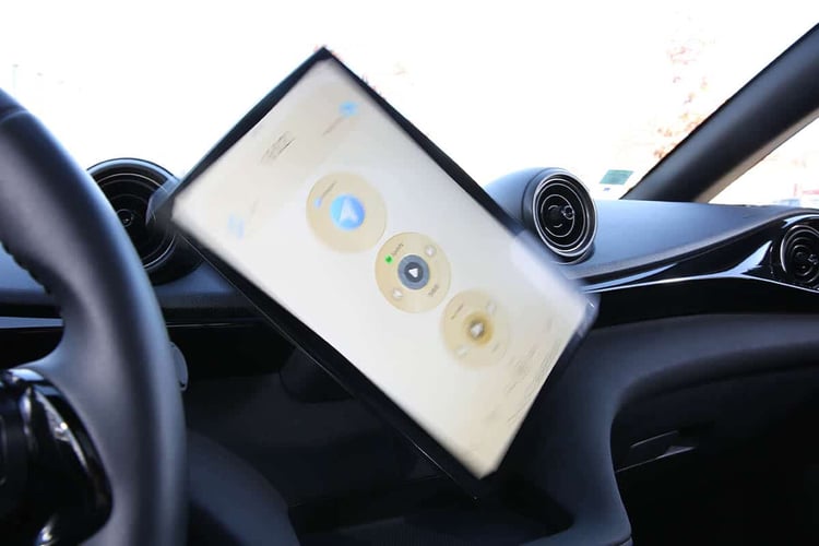 Sur la route, les aides à la conduite semblent améliorées depuis notre première prise en main, avec des interventions désormais moins autoritaires. À l’exception de quelques bips agaçants dès le moindre kilomètre/heure de trop ou d’une aide au maintien dans la file qui rigidifie plus qu’il n’en faut le volant, les prestations sont dans la moyenne. Tout comme le confort acoustique, même si une MG 4 se montre plus silencieuse à bord selon notre sonomètre avec un écart de 2 dB à 130 km/h.