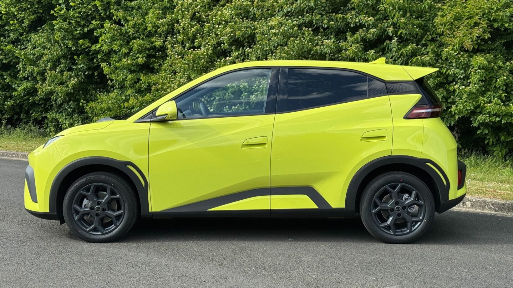 La BYD Dolphin Surf en finition Comfort surprend par son niveau d’équipement : phares LED, vitres surteintées et rétroviseurs électriques rabattables avec éclairage intégré, et même la peinture métallisée. Les jantes en alliage de 16 pouces figurent en série dès la version intermédiaire Boost.