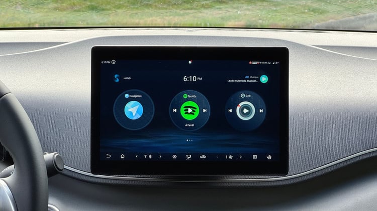 La BYD Dolphin Surf équipe toutes ses finitions d’un écran tactile rotatif de 10,1 pouces. Mais cela fait surtout office de gadget, car la fonction Apple CarPlay/Android Auto (sans fil) ne fonctionne qu’en mode horizontal. La qualité de l’écran tactile mérite cependant d’être soulignée avec de beaux graphismes et une excellente réactivité. On trouve même des jeux vidéo, un accès à YouTube et une commande vocale facile à activer depuis le volant.