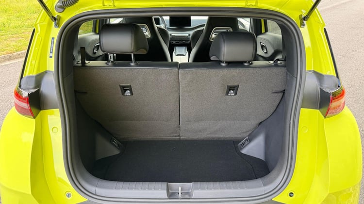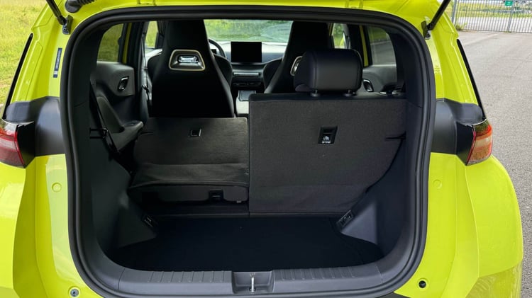 La BYD Dolphin Surf annonce 308 litres contre 326 litres de volume de coffre pour la Renault 5. Nous n’avons pas eu le chiffre en normes VDA plus réalistes, qui se réduit à 277 litres sur la R5 et devrait atteindre à peine 250 litres sur la BYD dont la soute s’avère peu profonde, étroite, large et bien moins haute que celle de la française. Il n’y a d’ailleurs même pas besoin de couvre-bagages tant le hayon est proche des dossiers.