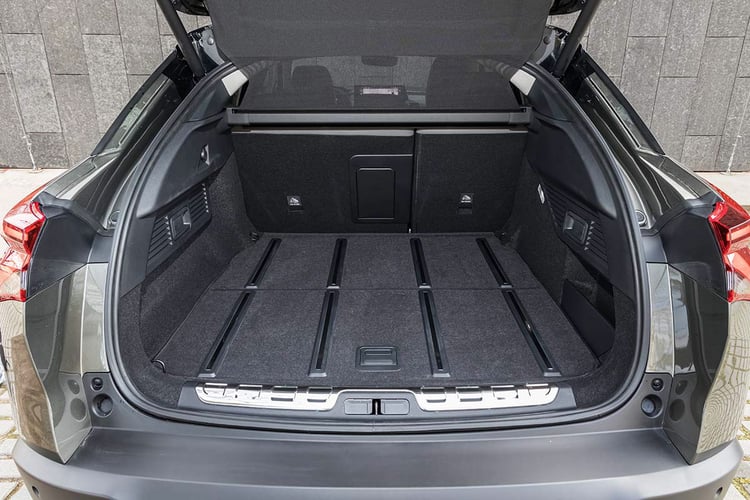 D’une capacité annoncée de 485 l dans cette version hybride rechargeable, le coffre perd 60 l par rapport aux versions thermiques en raison de l’implantation des batteries au fond du compartiment, sous le plancher. Cela ne grève donc pas le volume utilisable. Reste que si sa profondeur est un plus, atteindre les objets contre la banquette est un exercice délicat.