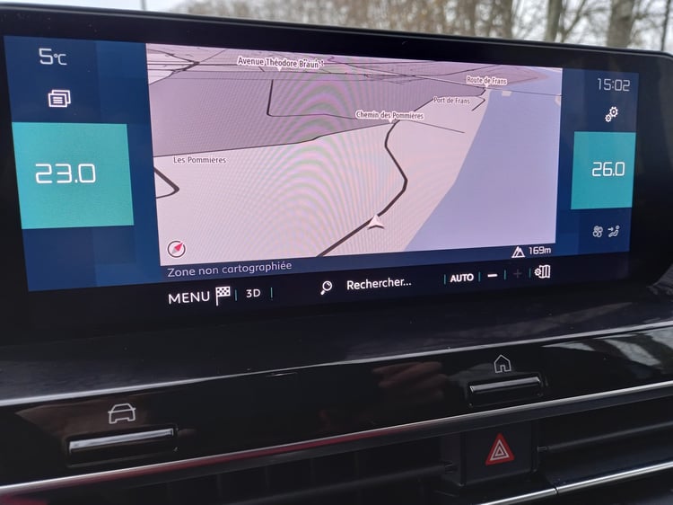 L’affichage est plutôt fluide, à l’exception du GPS d’usine du véhicule, qui présente quelques lenteurs pour afficher la carte et rechercher les destinations. Outre cet écran, le conducteur bénéficiera d’informations sur l’instrumentation numérique derrière le volant.