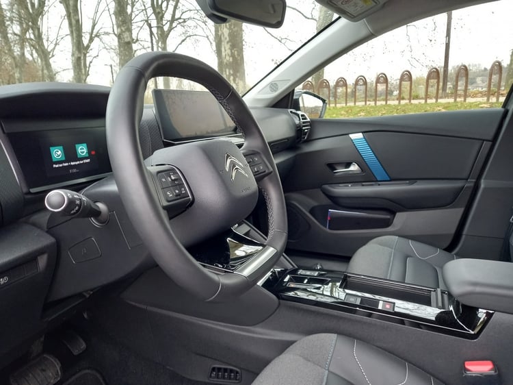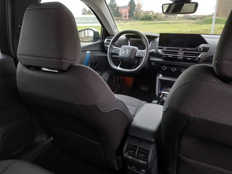 Comme à son habitude, Citroën mise sur le confort des occupants du véhicule, et cela commence par un bon volume dans l’habitacle. À l’avant, la sensation d’espace est correcte et la place aux jambes pour le passager l’est également.