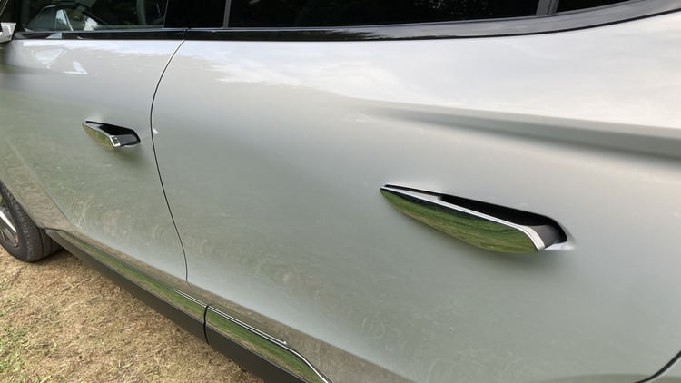 Comme les autres marques du groupe Stellantis, DS ne cherche pas à distinguer cette version e-tense des autres motorisations thermiques. Hormis la trappe de recharge, à l’arrière gauche, il n’y a aucune distinction.