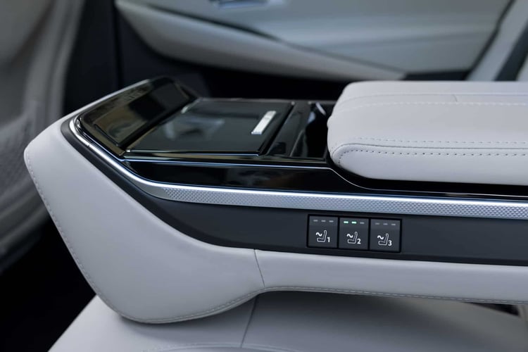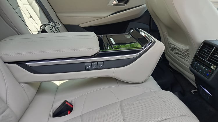 L’accoudoir central s’ouvre en deux parties et offre un bel espace de rangement. On en trouve d’ailleurs deux autres en remontant jusqu’à la console centrale. Les deux peuvent être fermés pour une présentation plus jolie de l’intérieur, et sur la trappe de fermeture de celui placé directement sous la console centrale, on retrouve le logo de la collection.