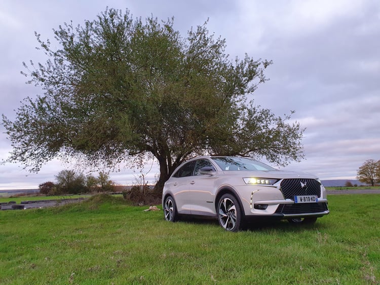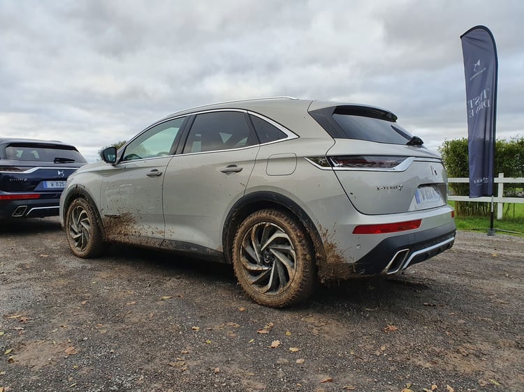 En effet, l’architecture permet une conduite 4 roues motrices, et se permet même des escapades hors des sentiers battus. La motricité est même remarquable. Au cumul, le DS 7 assure 300 chevaux maximum et 520 Nm de couple, via une boîte automatique 8 rapports. C’est amplement suffisant pour mouvoir le SUV, qui pèse tout de même 1.825 kg. Un poids donnant une inertie sensible dans notre session tout-terrain, ainsi qu’en conduite dynamique.