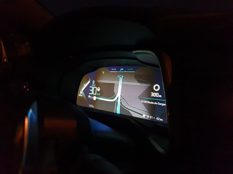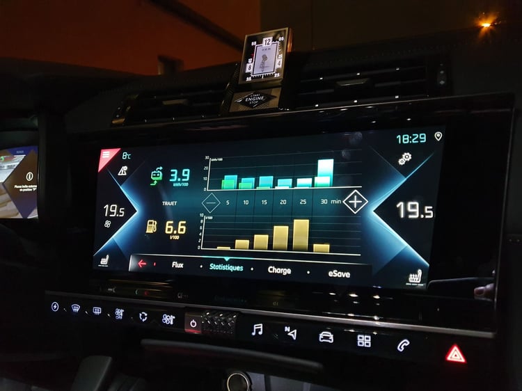 A bord, l’expérience est appréciable. Le DS 7 est dans son époque côté confort, technologie et système multimédia. Sur notre modèle Grand Chic, nous avons pu éprouver la conduite semi-autonome, au maintien de voie très précis, ainsi qu’une vision nocturne ou un système audio Focal. Si les choix ergonomiques ne nous ont pas forcément convaincus à l’instar des matériaux employés – bien qu’originaux, les écrans sont bluffants. Les compteurs numériques, de série, sont très modernes avec six affichages différents. Il manque encore quelques détails comme la consommation instantanée ou un écran central moins effet miroir pour donner un 10/10. De plus, la gestion d’Android Auto et des nombreux boutons tactiles se révèle facile à prendre en main.