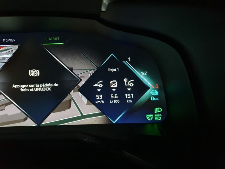 Pour revenir à l’électricité, la capacité de la batterie est de 13,2 kWh. Annoncée à 58 kilomètres en cycle WLTP, l’autonomie est peu atteignable en pratique. En revanche, la consommation est basse pour un SUV de 300 ch. Nous étions loin des très théoriques 1,3 l/100 km (pour 34 g/km de CO2) annoncés par le constructeur lors de notre parcours avec batterie pleine. Toutefois, nous avons pu atteindre 4,3 l/100 km sur un trajet urbain/périurbain avec 50% de conduite électrique, soit environ 23 kWh/100km. Batterie vide, difficile de tomber sous les 8 l/100 km, même en sollicitant la récupération d’énergie et le mode recharge via le moteur essence. En tout, sur 151 km, nous avons obtenu 5,6 l/100 km, à 53 km/h de moyenne.