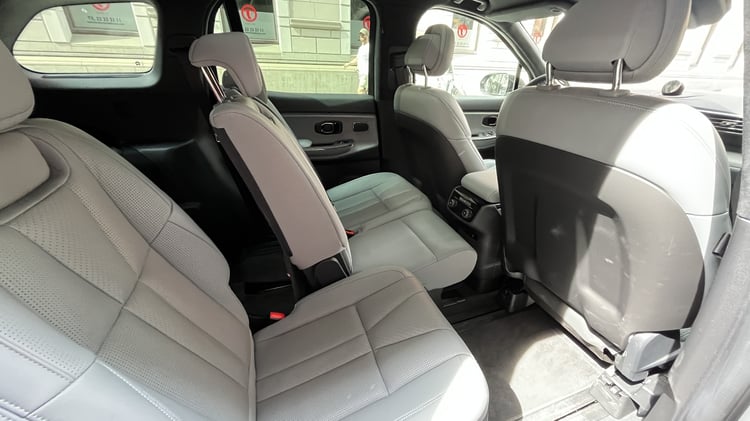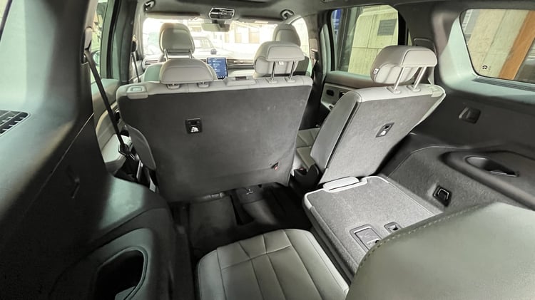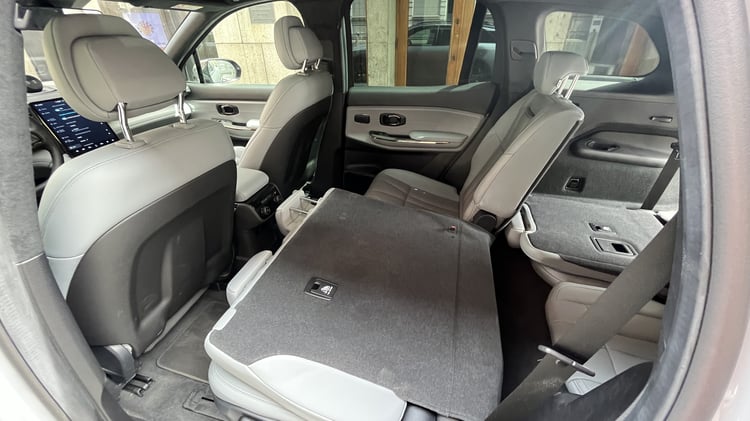 Ce qui est remarquable chez Nio, c’est d’avoir pensé à des accoudoirs moussés et des porte-gobelets pour les 2 personnes installées le plus à proximité du coffre. À noter que la rangée centrale est coulissante, de façon différenciée, entre la personne assise à droite et celle de gauche. Toutes les deux bénéficient en outre des sièges chauffants et ventilés.