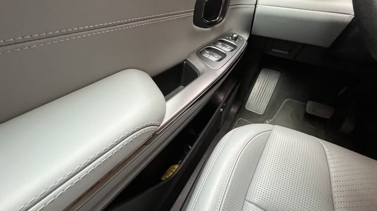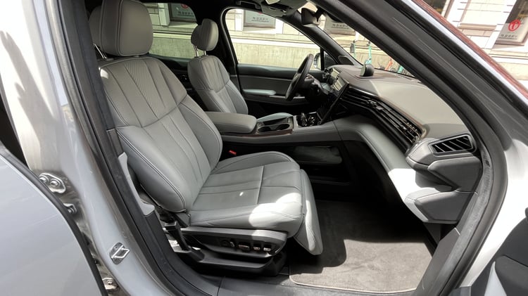 Des rangements sont disponibles un peu partout dans le Nio ES8. Sauf qu’il n’y a pas de boîte à gants, comme sur l’Aiways U5. Le conducteur et son voisin de droite sont entourés de zones rembourrées recouvertes de cuir avec surpiqûres. Leurs sièges sont réglables électriquement.