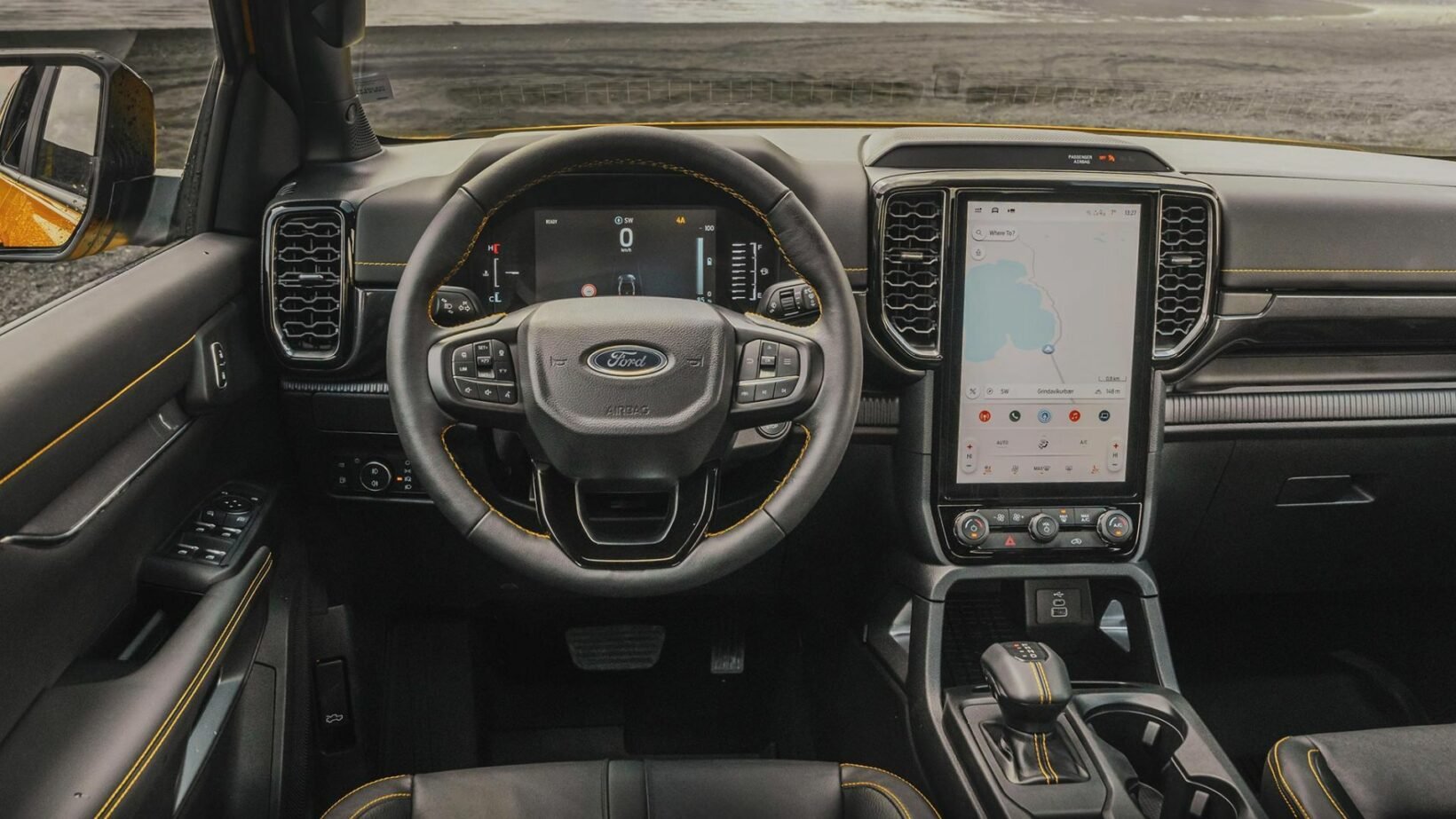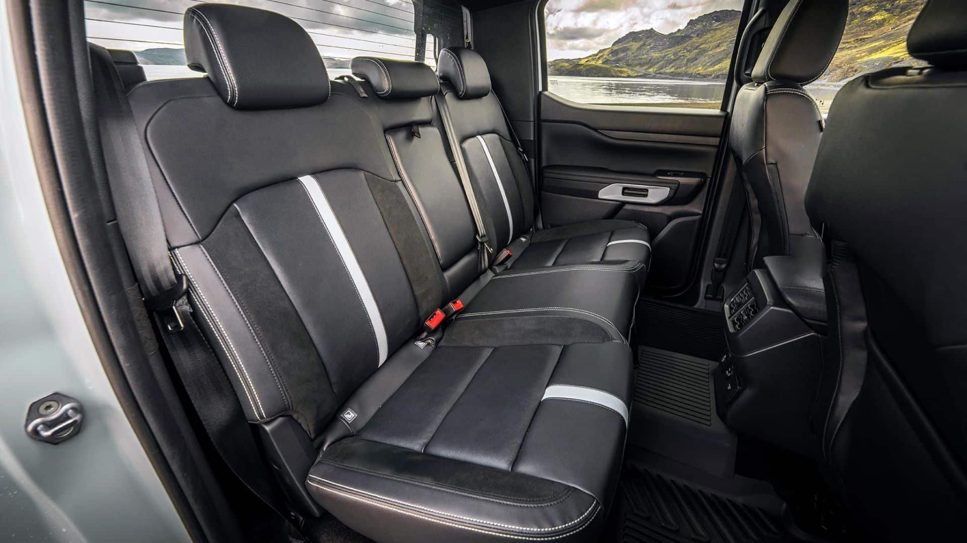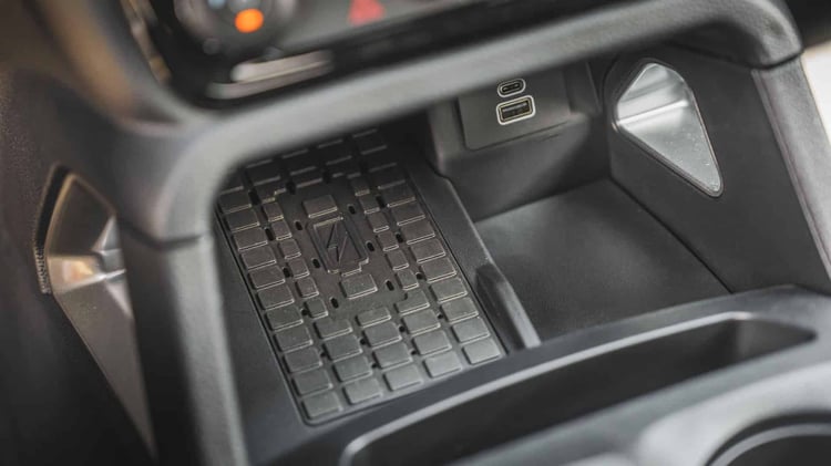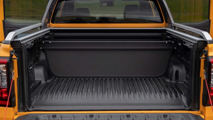 Détailler la liste des équipements serait fastidieux, mais retenez que ce Ranger PHEV dans ses versions Wildtrack et Stormtrack ne manque de rien : instrumentation numérique, écran tactile vertical de 12 pouces, recharge sans fil pour le téléphone, navigation connectée, nombreuses aides à la conduite, volant chauffant. L’édition de lancement Ranger PHEV Stormtrack y ajoute un système audio B&O à 8 haut-parleurs, des phares Matrix LED, et l’arceau coulissant au-dessus de la benne. En position arrière, cet arceau constitue un point d’appui permettant de transporter des échelles ou des planches de surf.