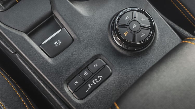 Essai : Maxus eTerron9, le premier pick-up 4×4 électrique d’EuropeLa petite escapade en tout-terrain nous a permis de constater la facilité avec laquelle ce Ranger se comporte dans ces conditions : Le sélecteur rotatif sur la console centrale donne accès aux modes 4×4, avec ou sans gamme courte et aux blocages de différentiel arrière. Petite bizarrerie, le contrôle de vitesse en descente n’est pas accessible par ce sélecteur central et les interrupteurs à proximité. Il nécessite de passer par l’écran tactile central. Cela permet peut-être de faire la différence entre les Ranger-natives et les novices…