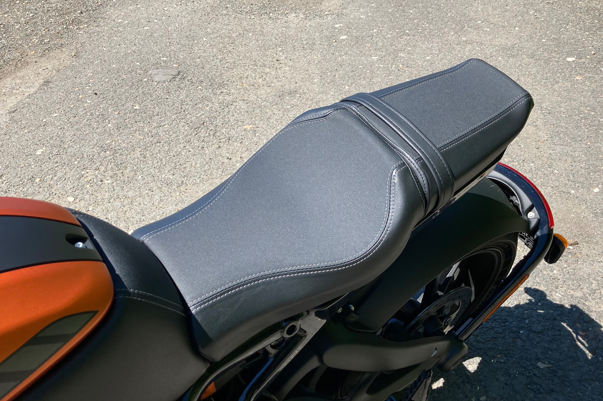 Point faible mis au jour à l’essai sur route de la Harley-Davidon LiveWire, et qui demande à être amélioré : la selle duo manque de confort avec sa trop grande fermeté et son étroitesse. C’est sans doute là le plus gros défaut de cette bécane. Le logement qu’elle abrite est ainsi trop juste pour ranger le câble de recharge et son boîtier.