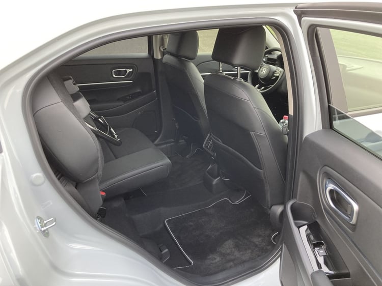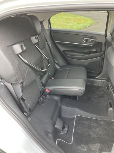 L’espace jusqu’aux dossiers des sièges avant est généreux pour les jambes. Il a augmenté de 3,5 cm par rapport à la précédente génération de HR-V. Toutefois, le passager du milieu pourra être gêné par l’assise relevée à sa place. À ses côtés, les 2 autres voyageurs bénéficieront d’un bon maintien latéral et de divers rangements.
