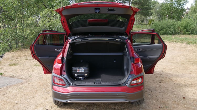 Si dans l’habitacle, l’espace peut permettre à une petite famille de voyager confortablement, le coffre risque de limiter le nombre de bagages emportés. Sa capacité est de 332 l (1114 l maximum), soit un peu moins que le Kona thermique (361-1143 l). A titre de comparaison, le volume du coffre d’un Renault Captur est de 455 l et 430 l pour un Nissan Qashqai.