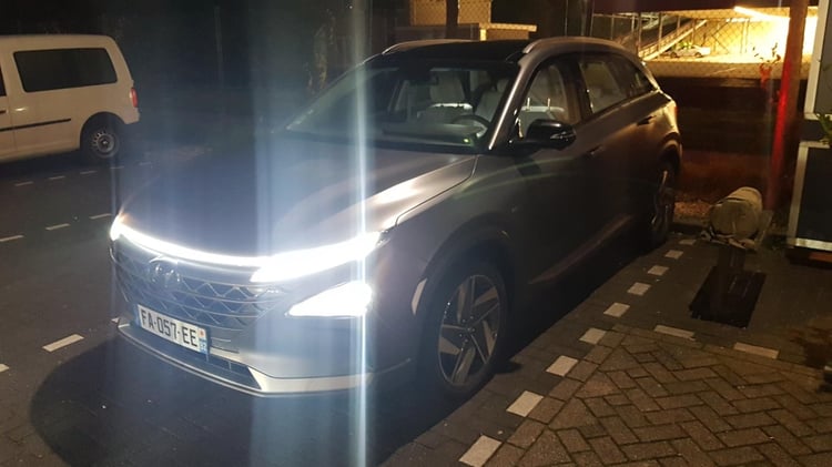 L’autonomie affichée sur le tableau de bord du Nexo est de 577 km, largement suffisante pour atteindre Rotterdam. Les autoroutes parisiennes dépassées, nous roulons à 130 km/h aidé par les fonctions de pilotage autonome de niveau 2 (assistance au maintien dans la voie et régulateur de vitesse adaptatif). La place conducteur est confortable, surélevée, facilement adaptable à la posture souhaitée et l’impression de volume du véhicule est bien présente. Les accélérations du Nexo sont vives sans excès grâce à son moteur de 163 ch (120 kW) et son couple de 395 Nm. Des caractéristiques qui lui permettent de réaliser le 0 à 100 km/h en 9,2 secondes et atteindre 179 km/h.