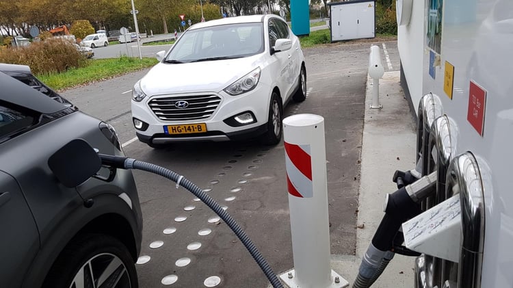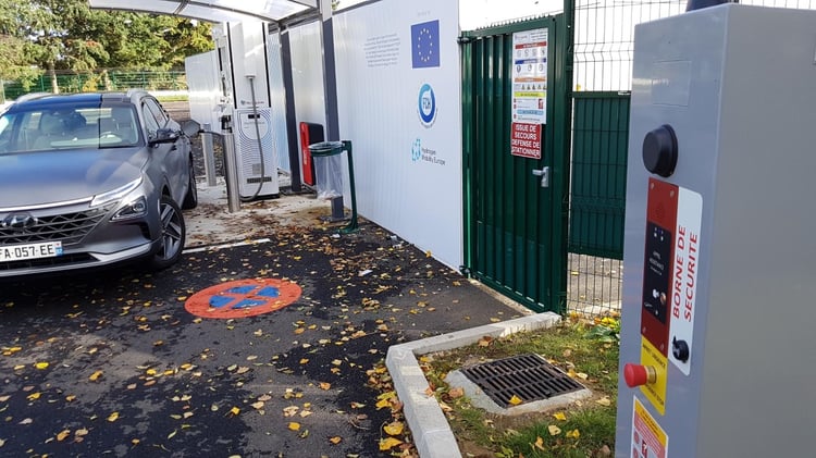 Ces déboires nous ont cependant permis de rencontrer quelques utilisateurs réguliers de la station. Cinq véhicules, majoritairement des Hyundai iX35 de sociétés ont pu effectuer leur plein en quelques minutes. Certains nous expliquent qu’ils n’ont pas d’autre alternative que l’hydrogène pour effectuer leurs nombreux déplacements sans émission polluante à l’échappement, jusqu’à 100.000 km annuels pour l’un d’eux. Si l’hydrogène nécessite actuellement énormément d’énergie pour être produit et distribué, son utilisation dans une pile à combustible ne rejette que de l’eau pure.