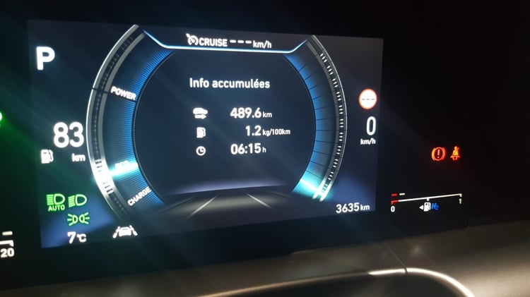 Nous roulons de la même façon qu’à bord d’un véhicule thermique, les avantages de la motorisation électrique en sus. Après quelques embouteillages à Lille, Gand et Anvers, nous atteignons Rotterdam avec une belle surprise côté autonomie. En effet, malgré les 489,6 km parcourus à vitesse élevée, le Nexo indique qu’il est possible de rouler 83 km supplémentaires. Si cette donnée est juste, on peut estimer l’autonomie totale du véhicule à environ 570 km dans ces conditions ! Imbattable pour une voiture « zéro émission ». La consommation moyenne s’est élevée à 1,2 kg d’hydrogène / 100 km, logiquement au-dessus des 0,95 kg/100 km communiqués par Hyundai en cycle mixte. L’autonomie WLTP est annoncée à 666 km sous ce même cycle.