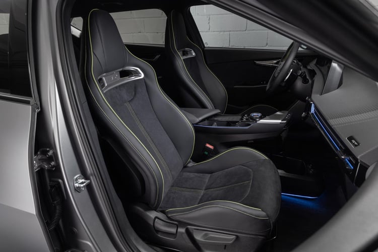 En attendant, le Turini est le juge de paix incontestable pour prendre la mesure du comportement dynamique de l’EV6 GT, ainsi que les progrès réalisés en matière de châssis. Au système de freinage majoré (disques de 380 mm à l’avant et 360 mm à l’arrière) s’ajoutent ici une suspension pilotée et un différentiel électronique à glissement limité qui répartit le couple entre les roues arrière (proportions non communiquées). Lancée à pleine charge et avec les deux moteurs à contribution, la Kia EV6 GT surprend par son agilité. Dans des sièges baquets plus bas, mais avec une position toujours un peu haute, on se sent comme aux commandes d’une très grosse berline qui semble alors bien plus légère qu’elle ne l’est réellement (2 200 kg à vide, tout de même). Ce sont là les bénéfices de la nouvelle suspension parfaitement calibrée qui contient à la perfection les mouvements de caisse. Au coup de volant, l’assiette s’autorise une légère oscillation avant de se poser vigoureusement sur ses appuis. Un phénomène, quoiqu’un peu plus prononcé avec le mode GT, qui libère toute la puissance et avec lequel on arrive plus fort dans les virages.