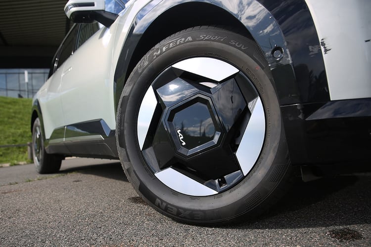 Avec 2 426 kg à vide, le Kia EV9 présente un rapport poids/puissance de 12,33 kg/ch avec son conducteur à bord. Hormis la Renault Twingo e-Tech, il est au fond du classement en la matière. Les performances n’ont donc rien d’exceptionnelles avec un 0-100 km/h en 9,4 s, un 80-120 km/h lancé en 7,0 s et un 400 m. en 16,9 s. Si le mode Sport donne une impression de vigueur, il ne développe pas plus de puissance et n’améliore pas suffisamment les performances. Bref, ce grand SUV accélère aussi fort qu’une modeste citadine et montre qu’il n’est pas fait pour la performance.