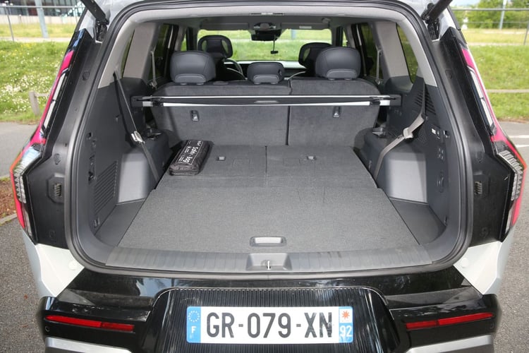 Le Kia EV9 est l’un des très rares SUV à sept places. Si sa carrure laisse craindre le pire côté conso’, le grand SUV a plus d’un tour dans son coffre.