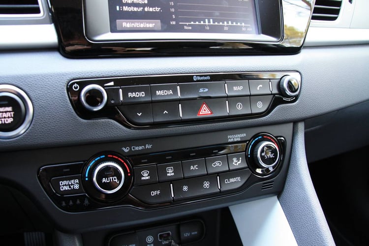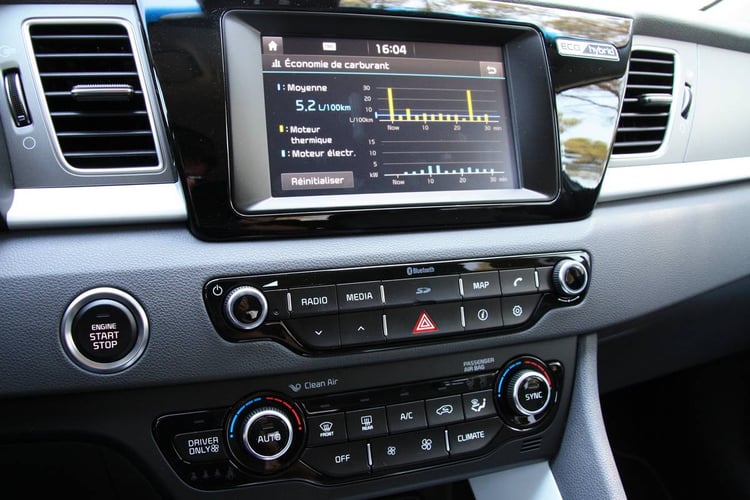 A l’instar du design extérieur, l’intérieur du Niro reste assez classique. Les finitions sont de bonnes factures et Kia ne commet pas l’erreur de sous-traiter toutes les commandes à l’écran tactile. Les boutons en façade restent ainsi nombreux pour régler les différentes fonctionnalités en un clin d’œil.