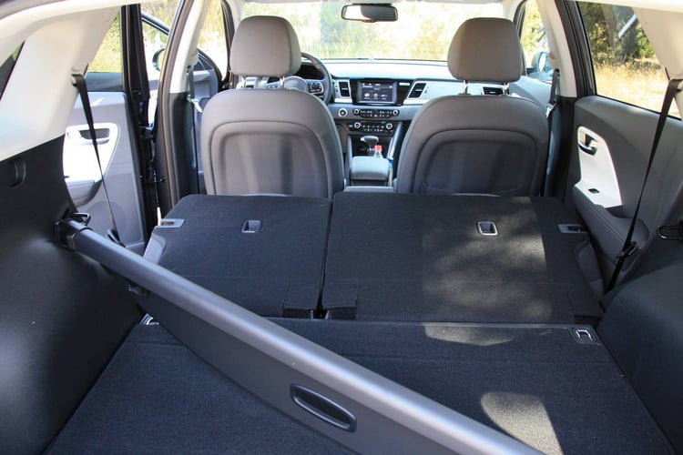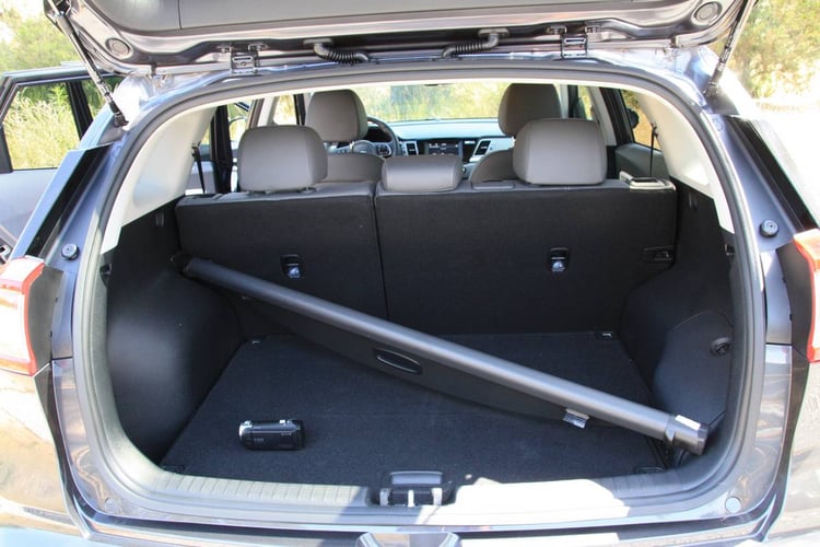 A l’arrière, l’espace pour les jambes est généreux même si la place centrale est loin d’être confortable. Logée sous les sièges arrière, la batterie ne vient pas condamner l’espace de chargement, le coffre du Niro offrant jusqu’à 427 litres (1425 l une fois les sièges arrière rabattus), soit à peu près l’équivalent d’un Nissan Qashqai. Elément important pour celles et ceux qui aiment voyager : le Niro offre une capacité de traction allant jusqu’à 1300 kg.