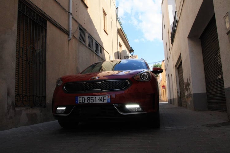 Si Kia a largement fait évoluer sa gamme au cours des dernières années pour rompre avec un design jugé trop consensuel, l’esthétique du Niro reste assez sage. Sans vouloir aller vers un style très clivant comme Toytoa avec sa Prius, le Niro emprunte une grande partie de ses lignes au Kia Sportage. Par rapport à son grand frère, le Niro affiche 13 centimètres de moins en longueur (4.355 m vs 4.480) et 5 centimètres de moins en largeur (1.805 vs 1.855). Proposé en option, le toit ouvrant offre une petite touche esthétique à la fois sympa et pratique dans le cadre des 30 degrés de notre essai.