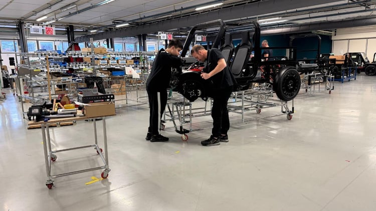 L’habitacle est étroit et la colonne de direction encombrante nécessite de tendre la jambe droite pour la passer sous le petit volant façon rallye. Le pédalier décalé vers la droite et l’absence de repose-pied peuvent générer un inconfort sur les longs trajets, mais les deux assises se règlent en longueur et la garde au toit est assez généreuse, et le grand pare-brise droit comme les larges rétroviseurs de Land Rover Defender assurent une belle visibilité. Les commandes se limitent à l’essentiel, avec sept interrupteurs basculants pour gérer les feux, les clignotants, les essuie-glaces ou le désembuage. Les poutres du châssis apparentes dans l’habitacle rappellent le côté utilitaire du véhicule et les portières dotées de lanières nécessitent d’être claquées fortement. Pas très fonctionnel, mais terriblement attachant.