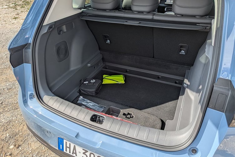 Bémol, cette organisation de l’espace intérieur se fait donc au détriment du coffre, au seuil de chargement relativement haut. Sur le papier, la malle revendique 525 l. Mais la place semble comptée dans cette soute, néanmoins bien découpée et dotée d’un sous-plancher assez haut. Cependant, comme souvent, le plateau d’un seul tenant impliquera de décharger les bagages pour accéder à cet espace. Bon point : le B10 propose un bac sous le capot (qui s’ouvre uniquement via la tirette sous la colonne de direction) pour y loger les câbles. La présentation du rangement est sommaire, mais l’effort est là.