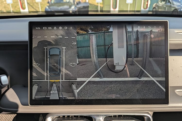 Trop brillante, notamment les jours ensoleillés, la dalle est toutefois agréable à utiliser : fluide, rapide et d’une bonne définition, elle ne souffre d’aucune critique. Pour les plus geeks, ajoutons qu’elle est pilotée par un système d’exploitation maison et une puce Qualcomm 8155 Chip. C’est en revanche un peu moins le cas du planificateur d’itinéraire qui demande un certain temps pour calculer un itinéraire, et cibler les bornes sur le chemin. À noter que la navigation n’est pas accompagnée d’un preconditionnement batterie avant la recharge rapide, mais il est possible de la réchauffer avant de partir si le véhicule est en recharge. Un choix étonnant.