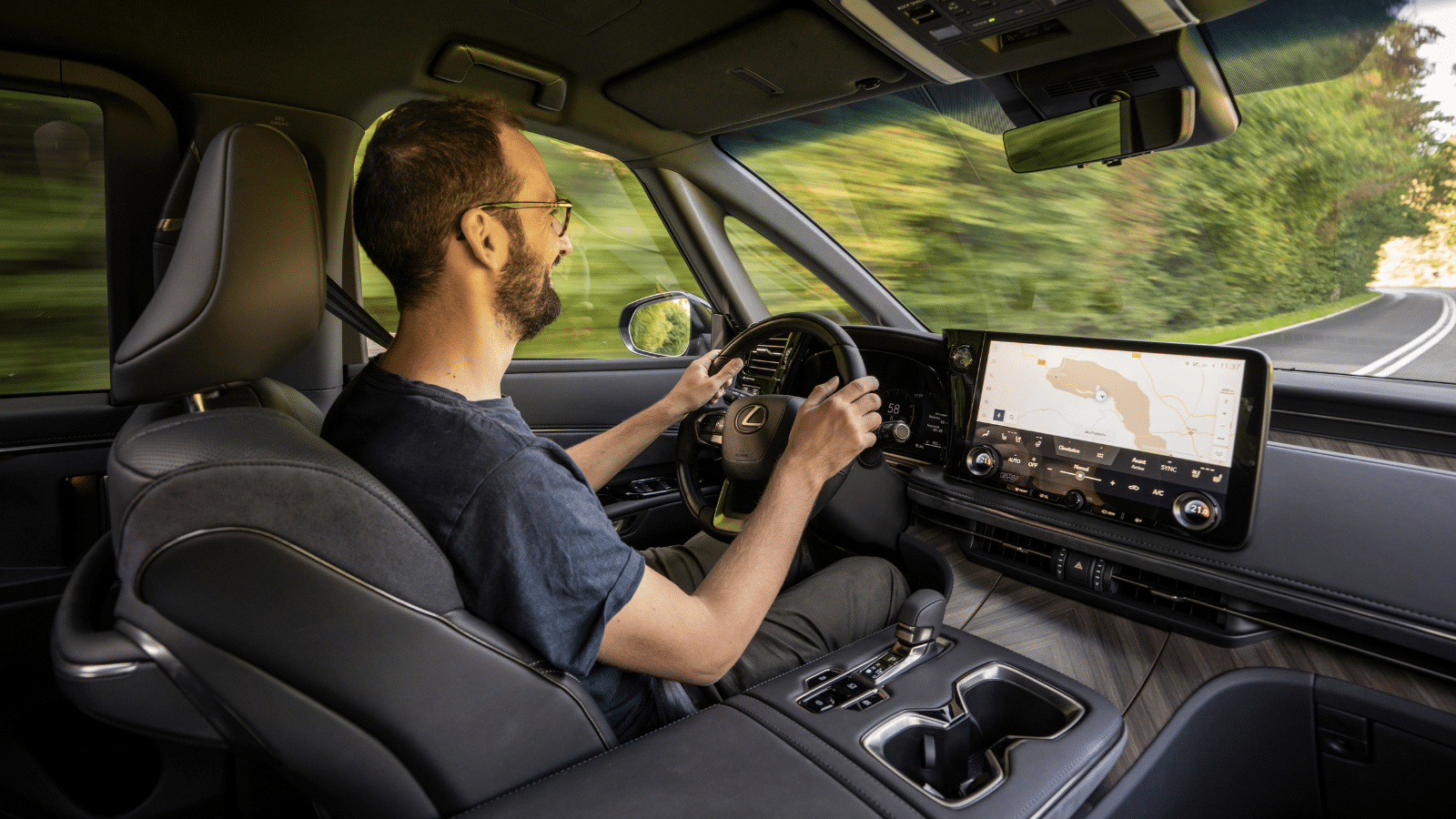 Une fois sur la route, le Lexus fait son job avec application. S’il n’a rien de sportif, le comportement du LM se montre rassurant. Le niveau de grip autorisé par les Michelin Primacy SUV+ est largement suffisant sur route sèche et le train avant n’est pris en défaut que s’il vous vient à l’idée de slalomer entre des cônes. Au freinage, l’électronique évite le « plongeon » même si les distances d’arrêt sont évidemment supérieures à une voiture traditionnelle. Bernard A. n’apprécierait d’ailleurs pas que l’on renverse son café.