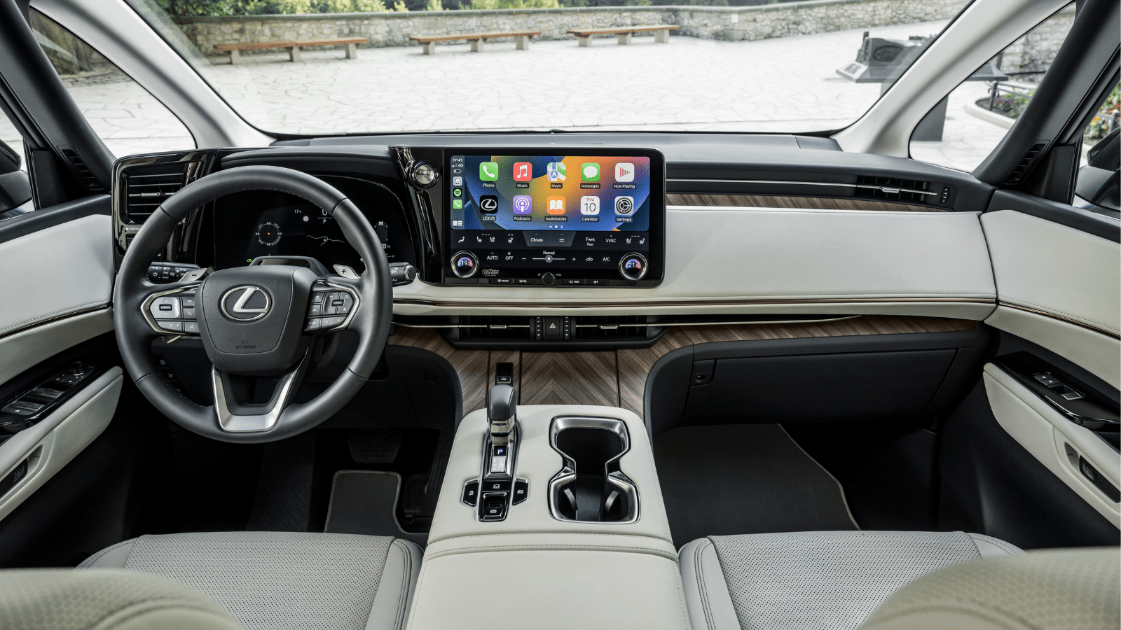 D’ailleurs, celui-ci (ou celle-ci) bénéficie d’un environnement de travail tout aussi cosy avec force boiseries. La position de conduite surélevée s’accompagne d’un vrai effort porté sur la visibilité. Lexus a opté pour un fenestron allégeant le montant A, doté son engin d’un rétro intérieur convaincant à l’usage, mais aussi d’une caméra 360° ayant la bonne idée de signaler la position des roues avant.