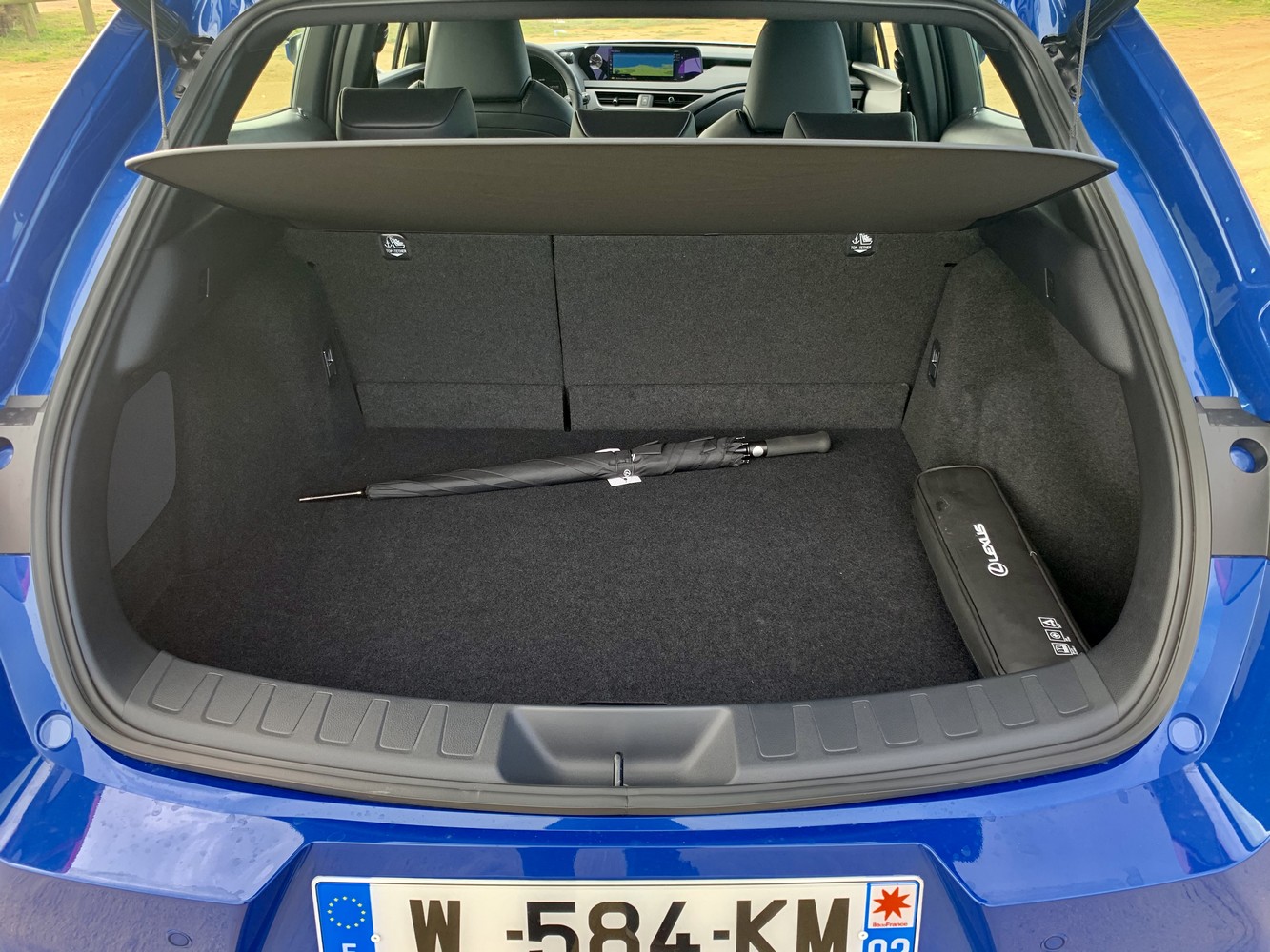 Avec 367 litres de volume de chargement, l’UX électrique offre 47 litres de plus que la déclinaison hybride. En cause : l’emplacement de la batterie. Située sous le plancher du coffre sur la version hybride, celle-ci migre sous les sièges sur l’électrique ce qui permet de gagner en profondeur.