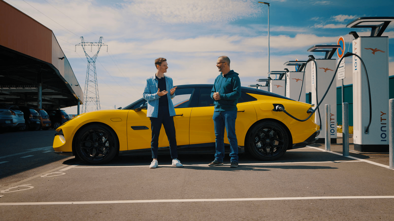 Il faut déjà trouver une borne capable de délivrer de telles puissances, et ce sont loin d’être les plus courantes. De plus, pour atteindre les chiffres annonces, il faut que les conditions soient idéales : batterie mise à température optimale par préchauffage, état de sa charge au ras des pâquerettes, météo autour des 25°C, réseau électrique en bon état ou encore pas de partage de la puissance avec une autre voiture se rechargeant à côté. Vous l’avez compris, la liste est longue, suffisamment pour faire douter Mathieu quant à nos chances d’atteindre le maximum que peut donner la station Ionity sur laquelle nous nous trouvions et pouvant offrir théoriquement 350 kW.