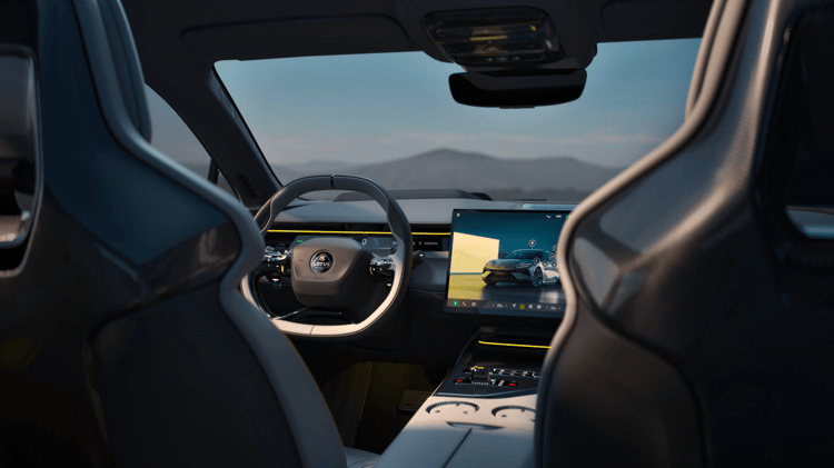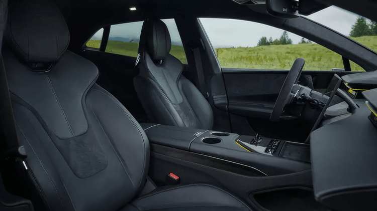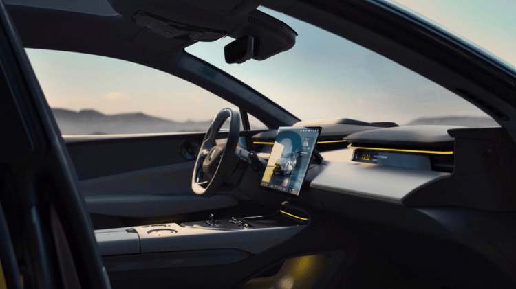 Mais l’Emeya a d’autres cartes dans son jeu et la plupart sont des as. Lotus n’a, en effet, négligé aucun détail pour accueillir le conducteur et les passagers dans le plus grand des conforts avec une liste d’équipements bien trop longue pour en faire ici le décompte exhaustif. Retenez cependant cette planche de bord spectaculaire percée de trois grands écrans, un de 15,1 pouces au milieu pour le système d’infodivertissement animé par, paraît-il, le plus puissant processeur que l’on peut trouver dans une automobile et, de part et d’autre, un bandeau de 12,6 pouces servant d’instrumentation pour le conducteur et le même face au passager pour ne pas faire de jaloux.