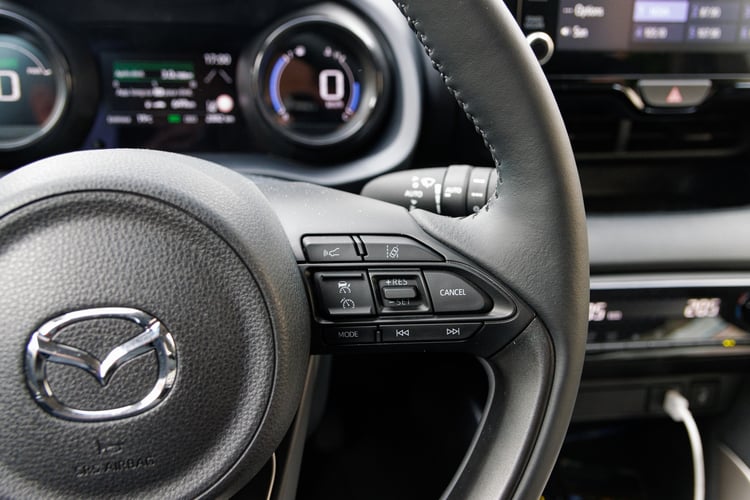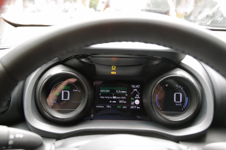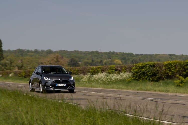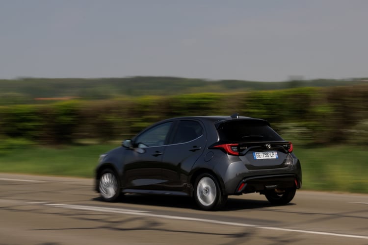 Bientôt 25 ans d’hybridation pour Toyota, donc plus de crainte à avoir côté consommation et agrément de conduite. Si cette Mazda 2 récupère logiquement le train épicycloïdal opérant comme une transmission à variation continue, elle bénéficie des gros progrès d’agrément des récentes hybrides Toyota. L’électrique vous permettra toujours un décollage rapide et sans bruit du feu, et verra ensuite s’y associer le thermique dans une parfaite symbiose. Les 116 ch en puissance cumulée pour les 1 125 kg de l’auto permettent un allant très satisfaisant à l’auto (0-100 km/h en 9,7 s) ; le thermique évitant bien plus les montées en régime lancinantes typiques des premières générations. Si le trois cylindres peut être un peu vibrant, notamment quand il démarre automatiquement à froid, il est globalement silencieux… bien que l’insonorisation de l’auto la garde plus rangée du côté des urbaines que de ses concurrentes les plus modernes et polyvalentes.