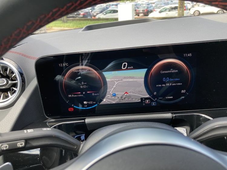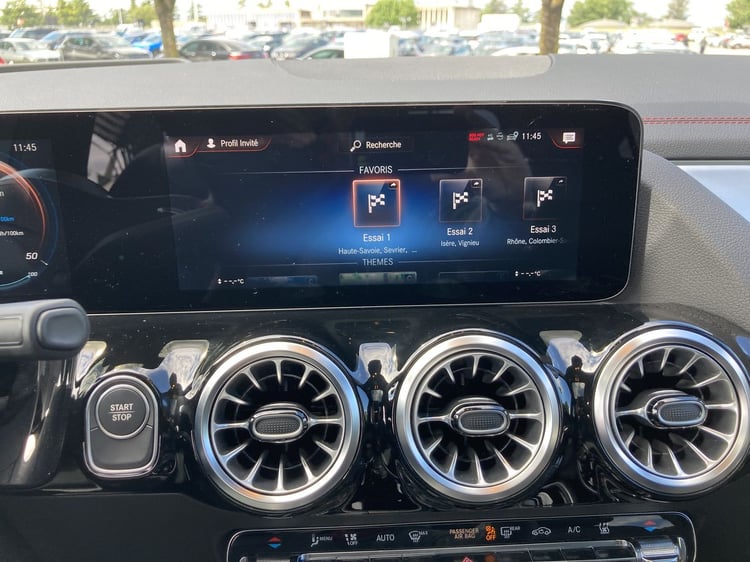 Notre essai a été réalisé avec un modèle haut de gamme, en finition AMG Line, doté du pack Premium Plus. Facturé 5 500 euros, ce dernier apporte en particulier le toit ouvrant panoramique, l’affichage tête haute, et la sonorisation surround Burmester.